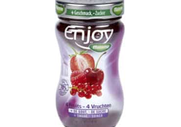 Het nieuwe recept van confituur 4 vruchten Enjoy by Materne is suikerarme (39 g per 100 g)…